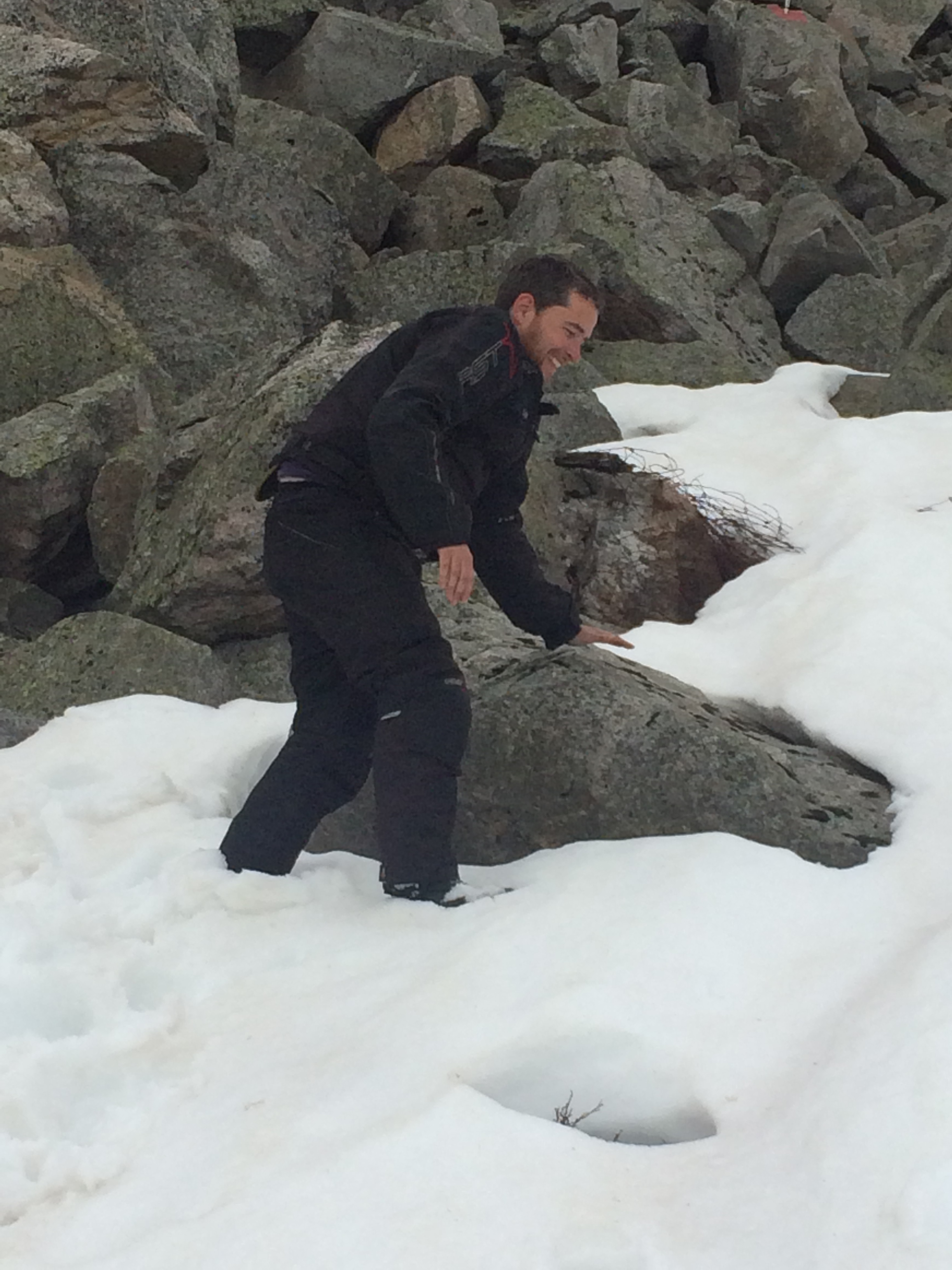 I make it. But as I do, and I start heading south on 550, back up the mountain, it starts to hail. It’s now a combination of biblical rain and hail. Remember, I am dressed for a different climate. I can say, with first hand knowledge, getting hit by hail, as you travel along at 40-50mph, hurts. It really hurts as it hits your uncovered face. A lot.